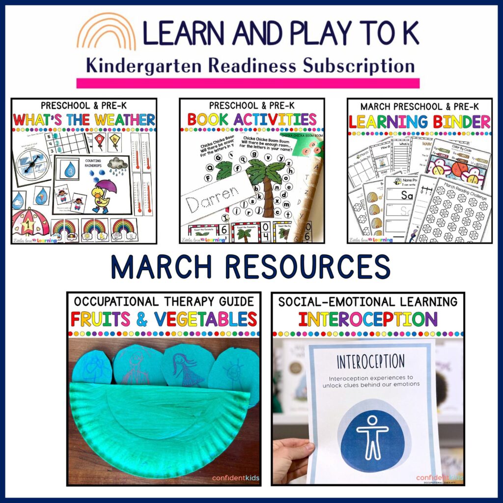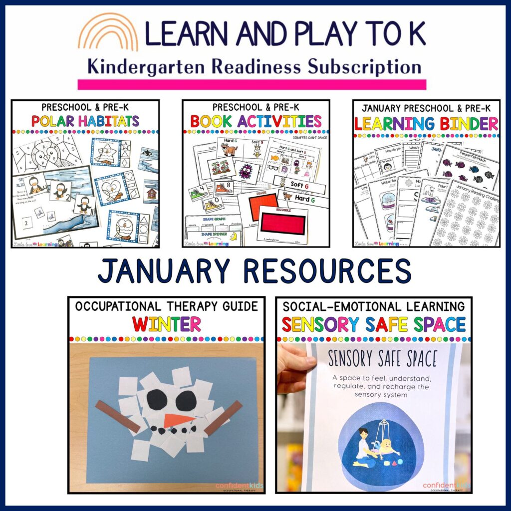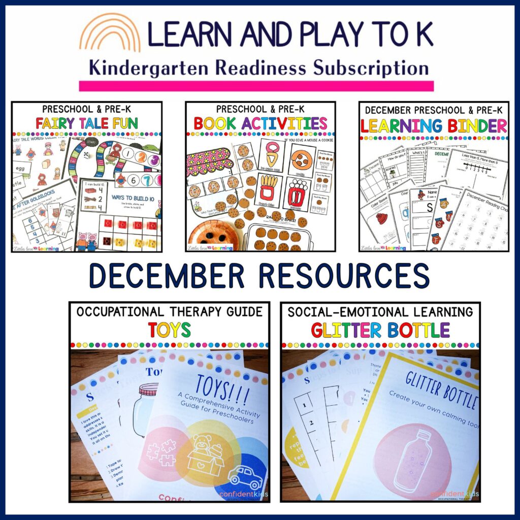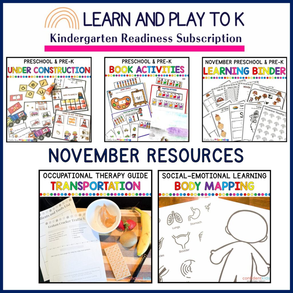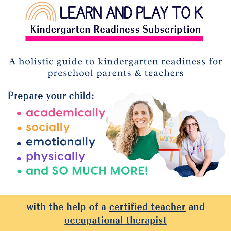 Learn and Play to K is the ONLY kindergarten readiness subscription that focuses on the WHOLE child…including academics, sensory health, social-emotional readiness, fine & gross motor skills, and MORE.
