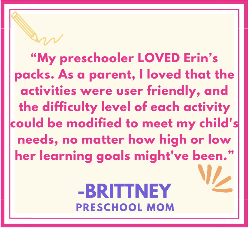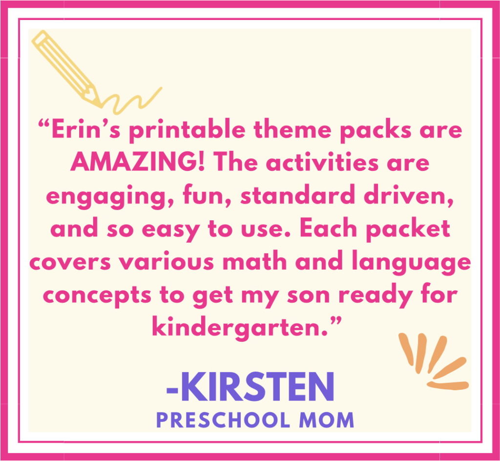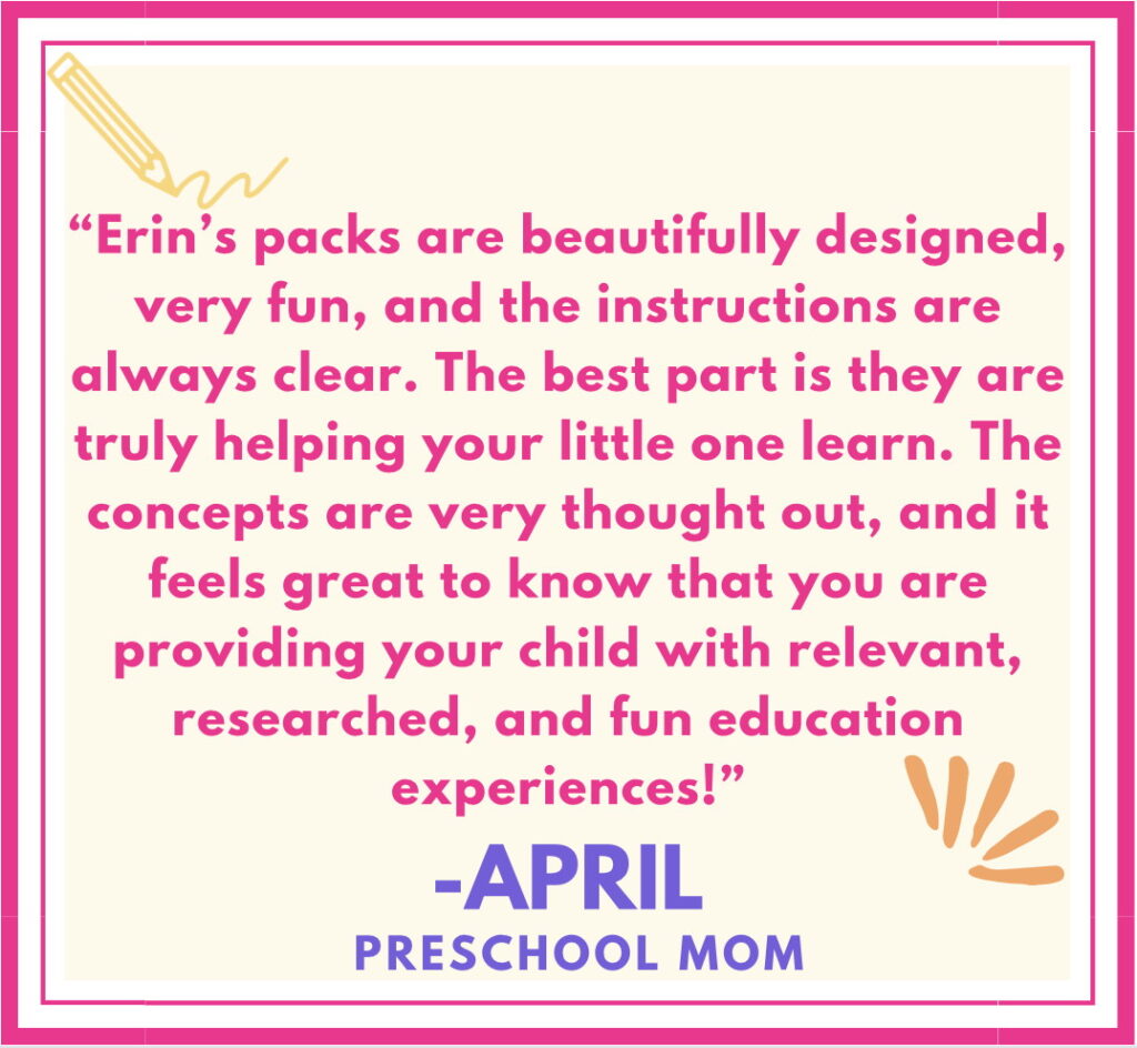 ERIN is a certified teacher with her master’s degree in Early Childhood Education, mom of 2, and founder of Littles Love Learning. She has over 15 years experience teaching kids from ages 2-8, both in-person and online, and she homeschooled her son for preschool when he was 3.