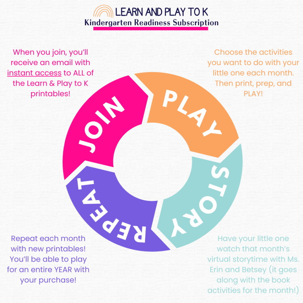 Learn and Play to K is the done-for-you subscription that packages EVERYTHING you need to prepare your child for kindergarten into one monthly download.
